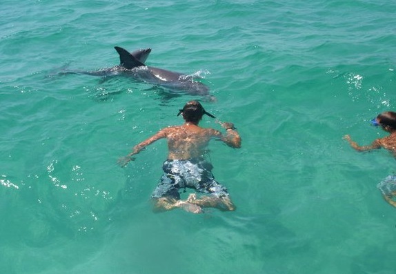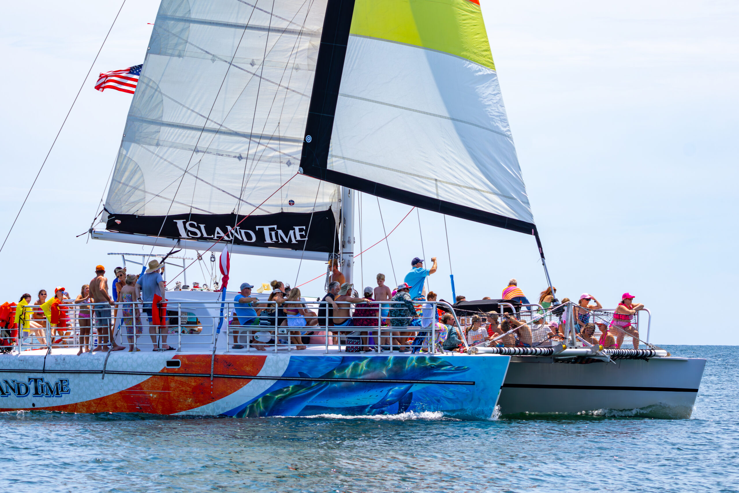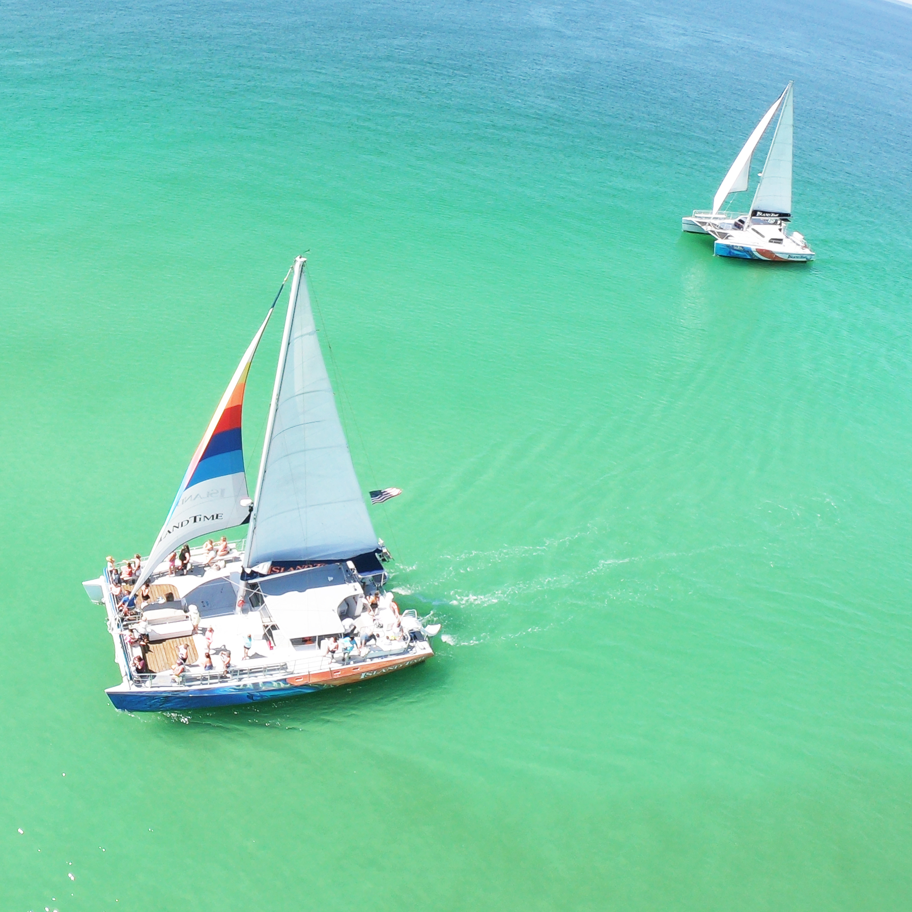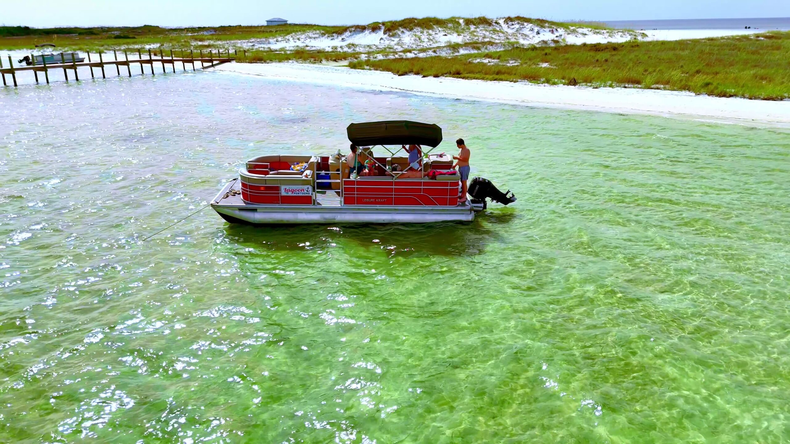 The Dock is home to Island Time Sailing and Lagoon Pontoons, offering catamaran snorkel and sunset cruises, private charters, boat rentals, jet ski rentals, and dolphin tours.